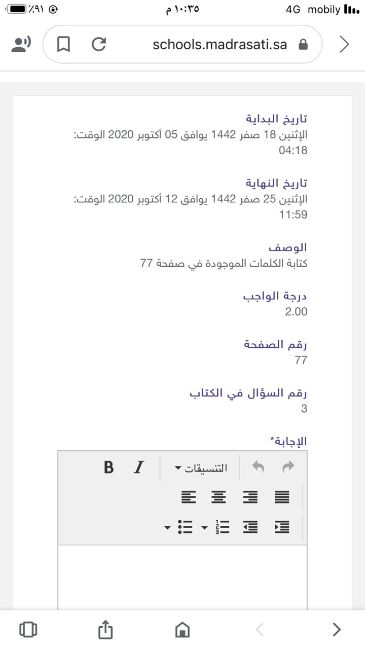 واجبات المنصه المعلمه تضع سؤال والاجابات عبارة عن خيارات الطالب يختار الاجابه الصحيحه