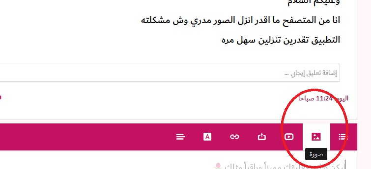 فيه شريط وردي تحت .. ثاني ايقونة من اليمين تبع الصور