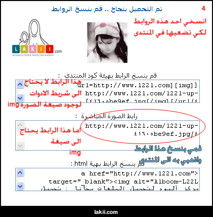 اذهبي الى اي موقع تحميل لتحميل الصور ويوجد كثير من هذه الموقع