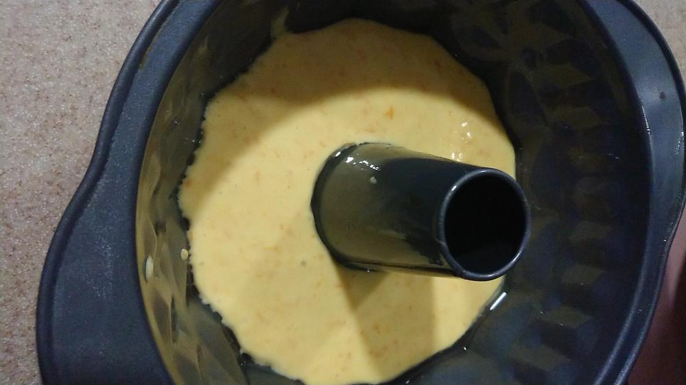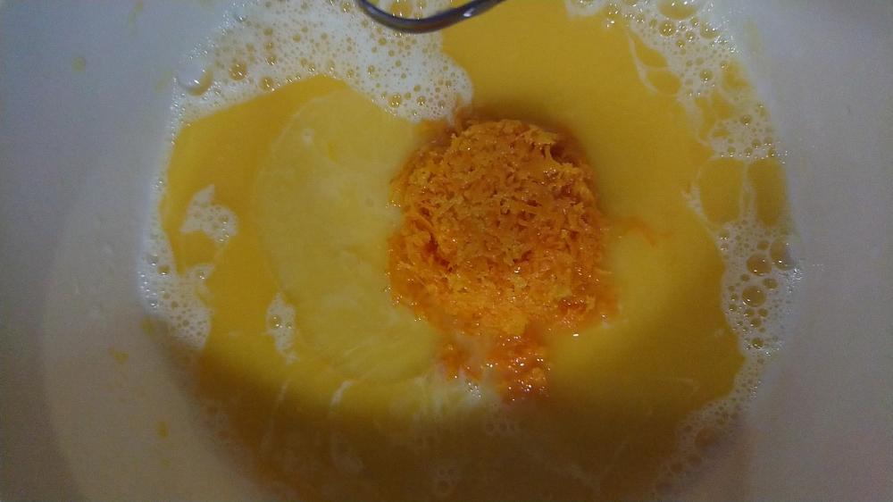 ونضيف عليها الزيت وعصير البرتقال وبشر البرتقال ونخلطهم مع بعض