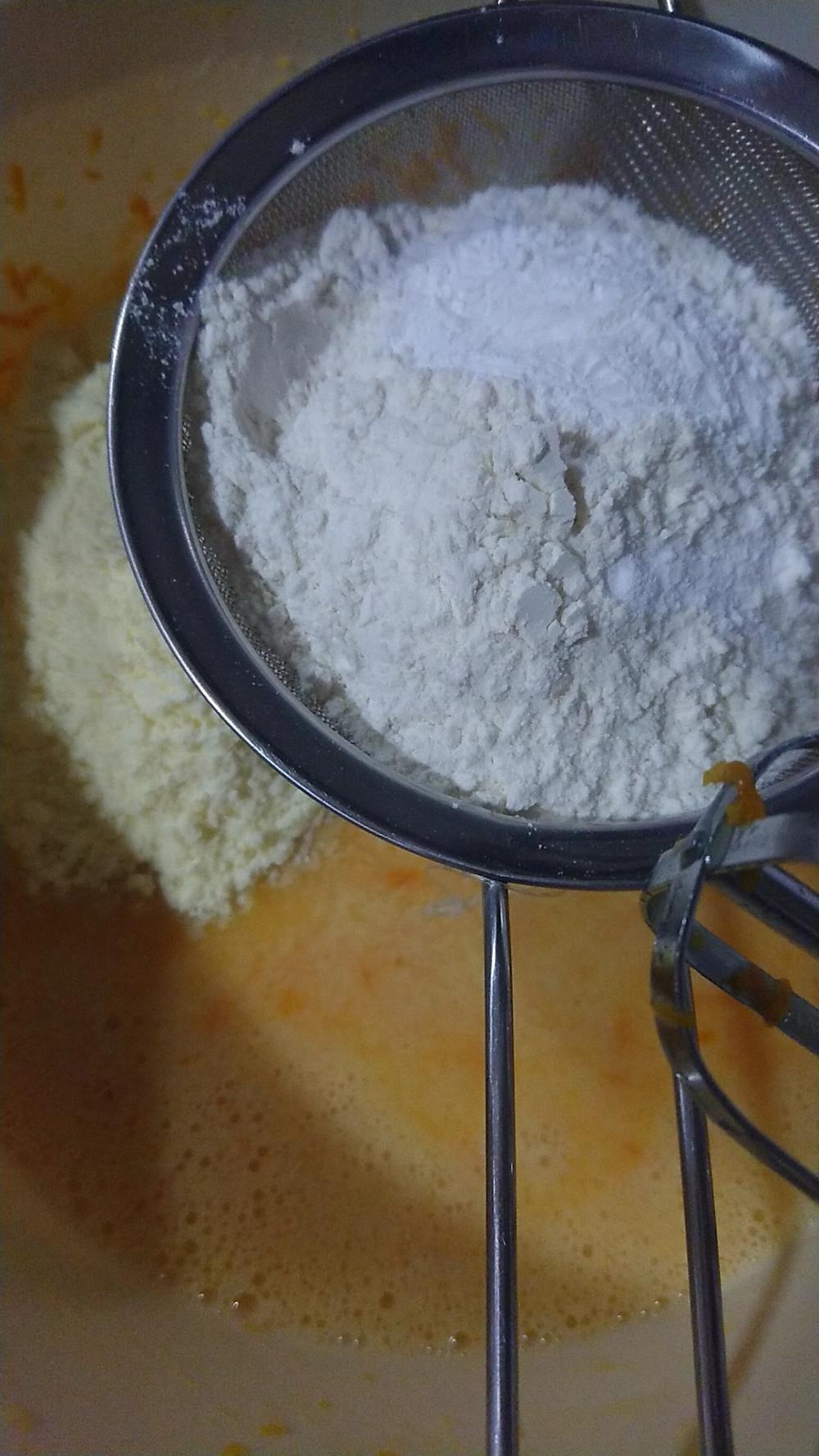 ثم نضيف الحليب والدقيق والبكينج بودر