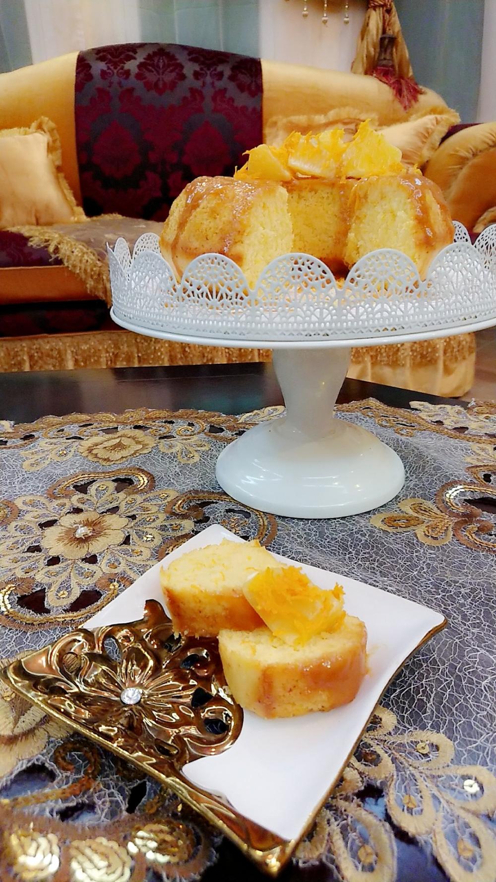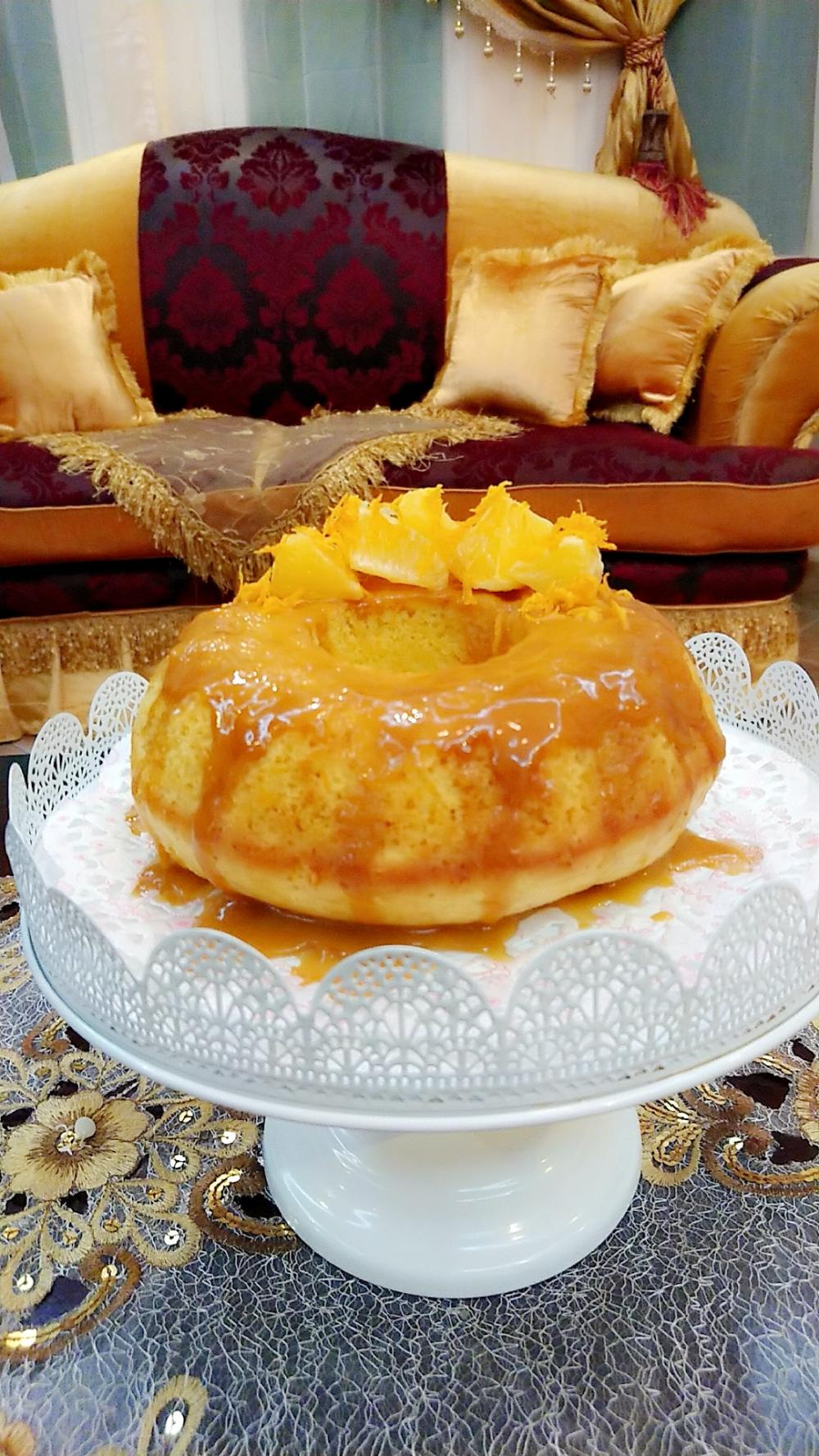 ع النار نكرمل كوب سكر ونضيف عليه علبه قشطة ونصف كوب عصير برتقال وظرف كريم كراميل ونخلطهم مع بعض ونصبها ع الكيكة وتقدم بألف عافية ❤️ ❤️