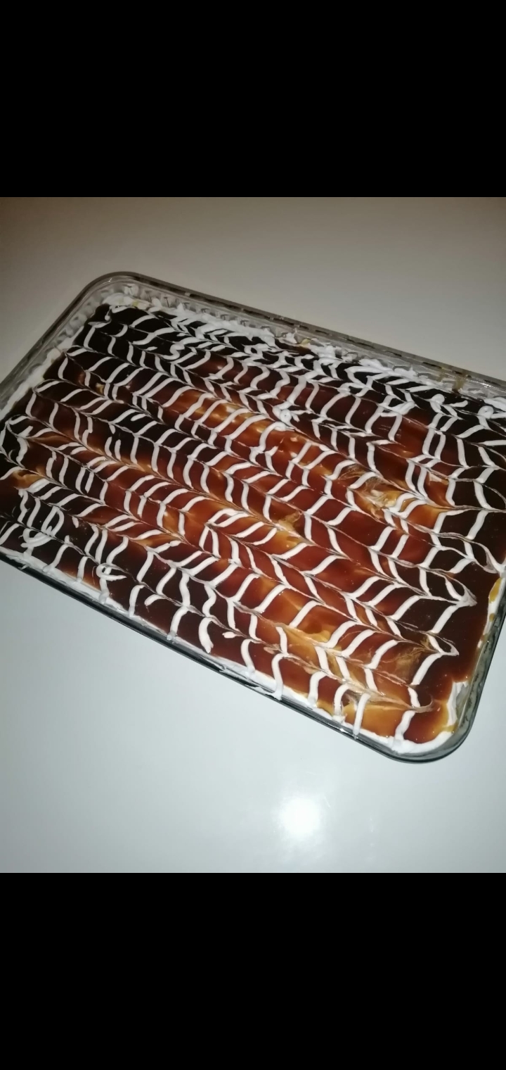 وبعد خروجها نثقب الكيك ونضع مقدار من كوب ونصف حليب الى كوبين