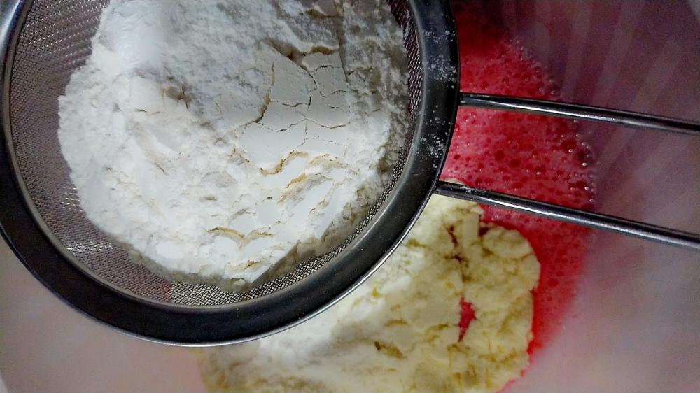 ونضيف عليها الحليب البودرة والدقيق والبكينج بودر