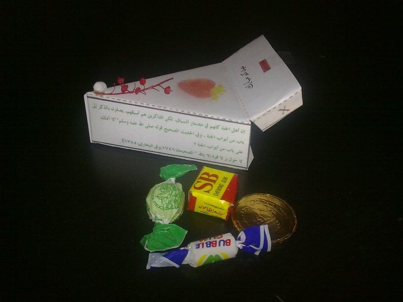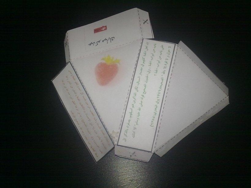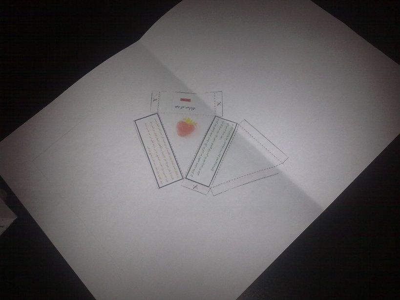 ثم تلف بهذا الشكل ويوضع الصمغ في المكان المحدد في الصورة التالية