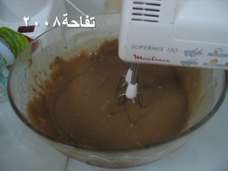 نخلط المواد الجافه مع بعض ونضيفها للخليط بالتدريج ونخلط