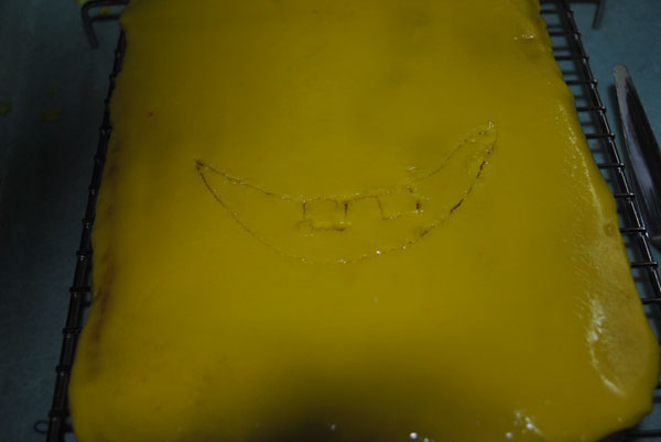 هاذي الخطوة حلوة للتلوين يعني لو لونتي وطلع شوي برة تقدري تمسحية بدون بهدلة وتعدلي براحة اكثر لو ان الشوكلا الصفرا مو يابسة
