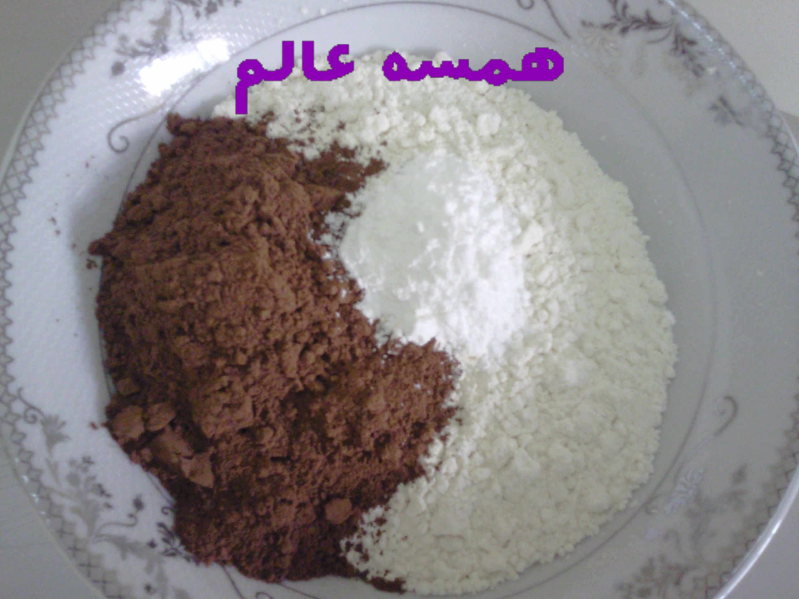 نفس الطريقة بس يضاف الها مع الدقيق 2ملعقة بودرة الكاكاو