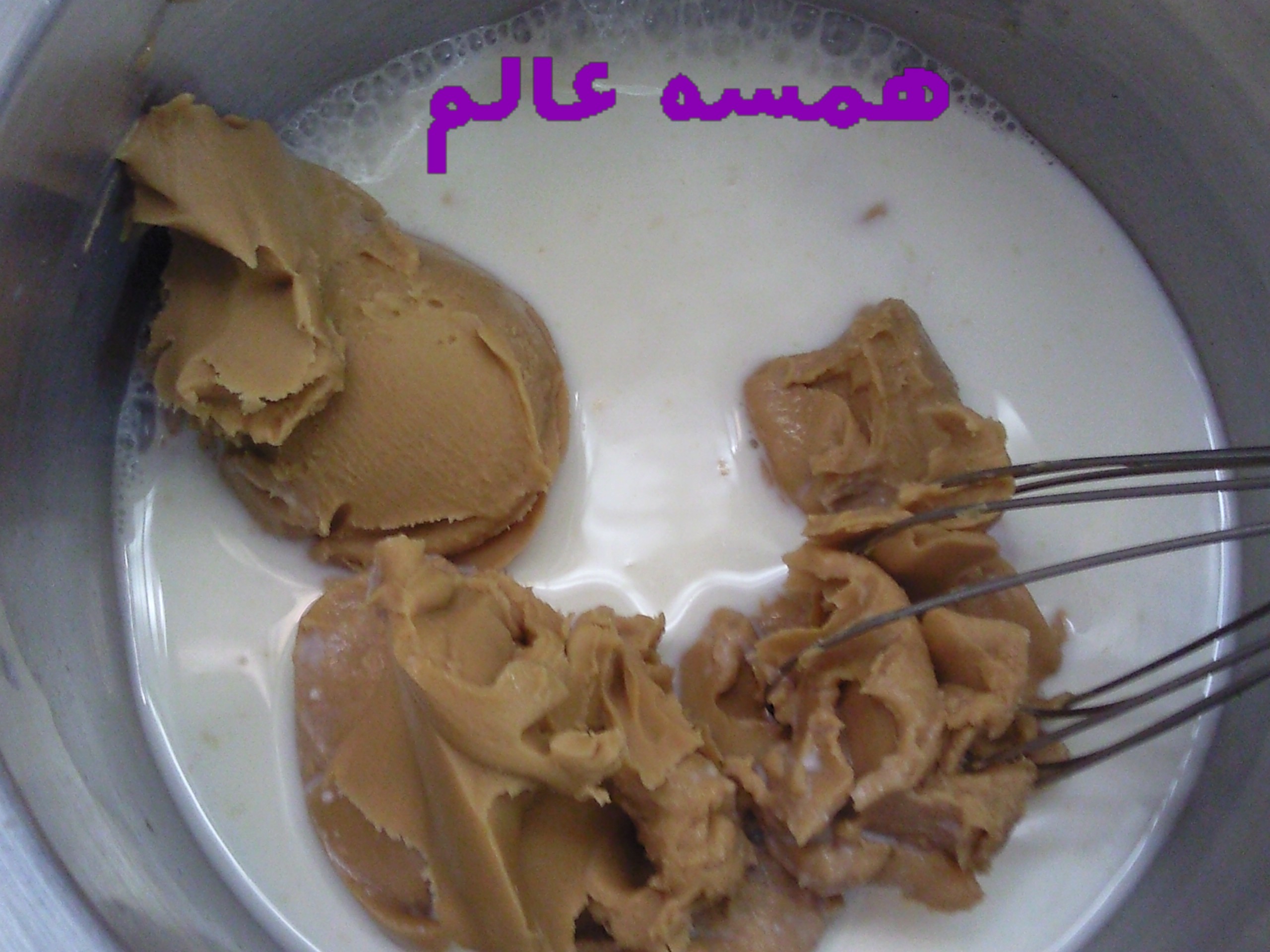 ويوضع في القدر حليب سائل و فول السوداني على النار