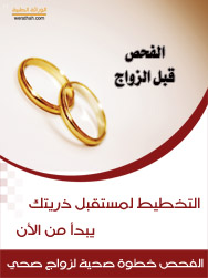 بمناسبة موسم الزواجات في هذا الصيف يقوم منتدى الوراثة الطبية بحملة للتوعية باهمية الفحص قبل الزواج و اهمية اتخاذ القرار المناسب بعد ظهور نتائج الفحص: يسرنا ان تشاركونا هذه الحملة و ان تساعدوا في نشرها لعل الله ينفع بها.