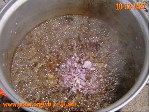 يوضع البصل عندما نشاهد أن لون اللحم تغير كما في الصورة