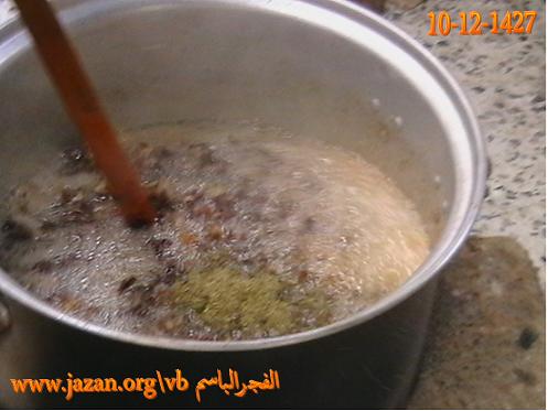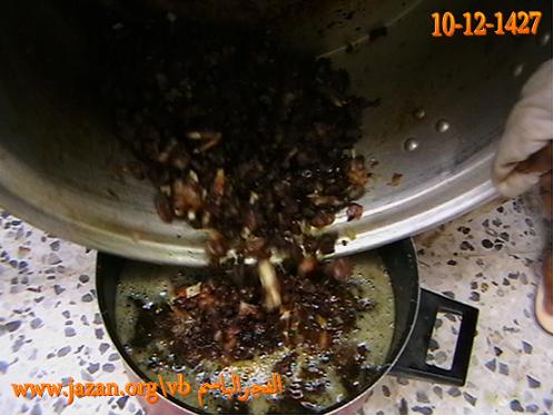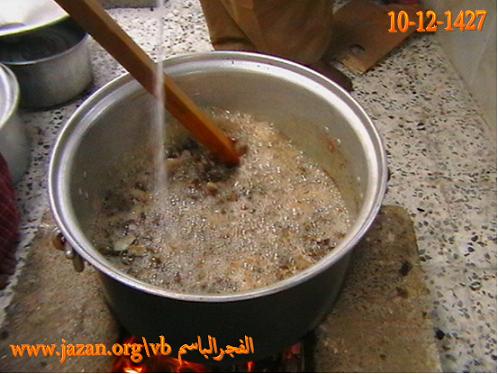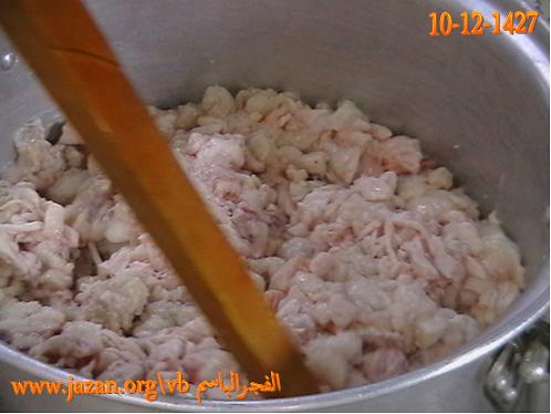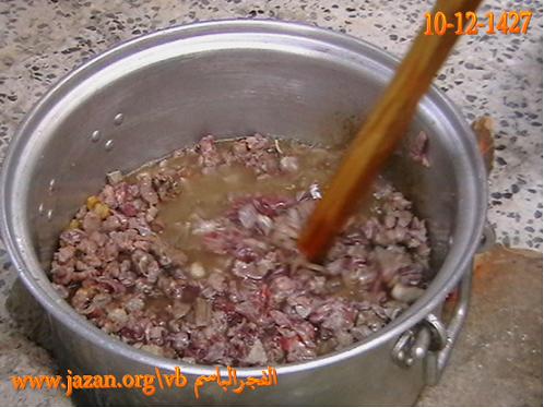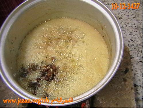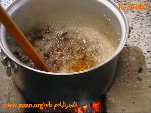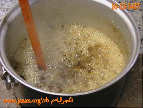 يوضع الشحم في القدر ويحرك ، ثم يغلق القدر بغطاء وبعد عشر دقائق يحرك مرة ثانية وهكذا