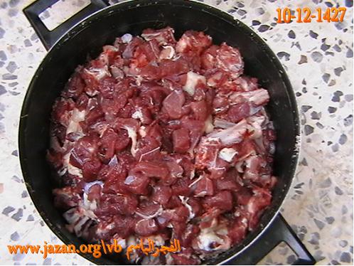 لحم مقطع إلى قطع صغيرة ولحم مع عظم أيضاً قطع صغيرة والكمية كما تحب