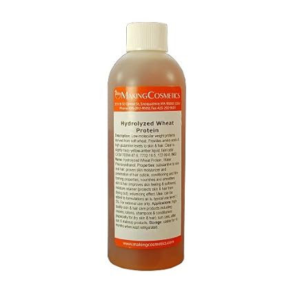 Description: Low-molecular weight proteins derived from soft wheats (MW 1000-1500 kDa). Does not contain gluten. Provides amino acids and high glutamine levels to skin and hair. Amber liquid, faint odor. CAS# 70084-87-6, 7732-18-5, 122-99-6. INCI Name: Hydrolyzed Wheat Protein. Properties: Excellent tensor and film-forming properties (increases firmness of the skin), nourishes and smoothes skin and hair (improves skin feeling and softness), moisture retainer (protects skin and hair from drying out), decreases number and depth of wrinkles, volumizing effects. Use: Can be added to formulations as is, recommended final concentration 0. 5 - 5%. Store in refrigerator. Application: High-quality skin and hair care products including creams, lotions, shampoos and conditioners (especially for dry skin and hair), sun care, after sun and ****** products, excellent for eye contour treatment.