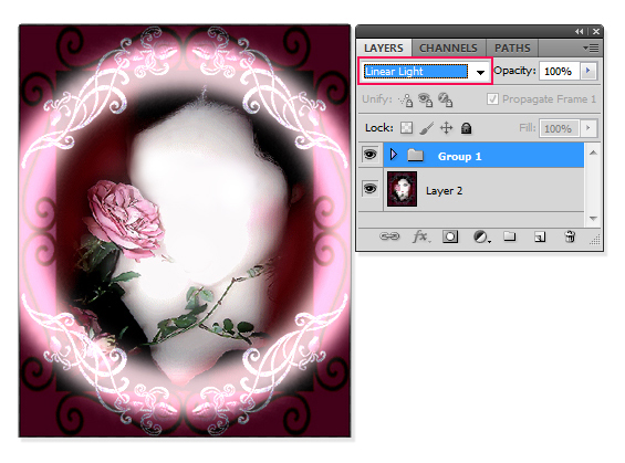 وهنا غيرت مود القروب إلى Color Dodge