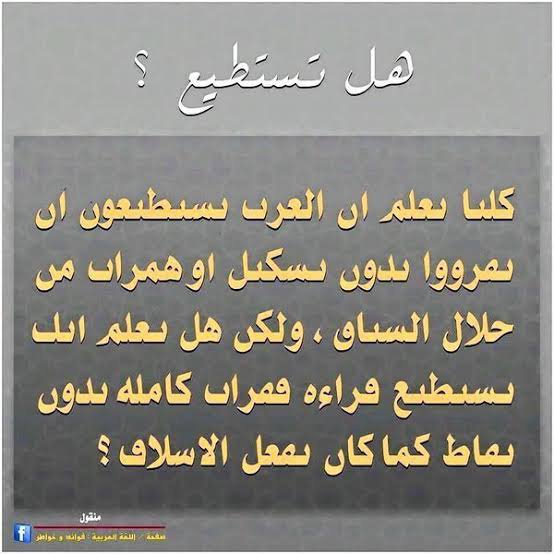 كلنا نعلم ان العرب يستطيعون ان يقرؤا بدون تشكيل أو همزات من خلال السياق ولكن هل تعلم انك تستطيع قراءة فقرة كاملة