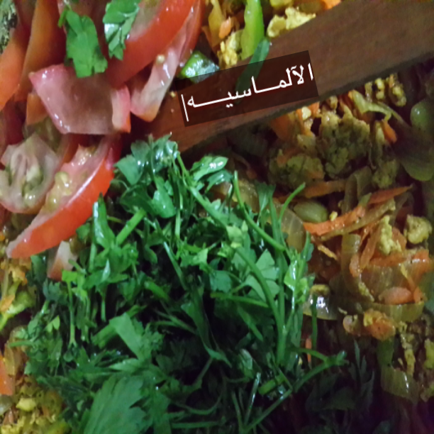ثم نطفيء النار ونضيف الطماطم والبقدونس