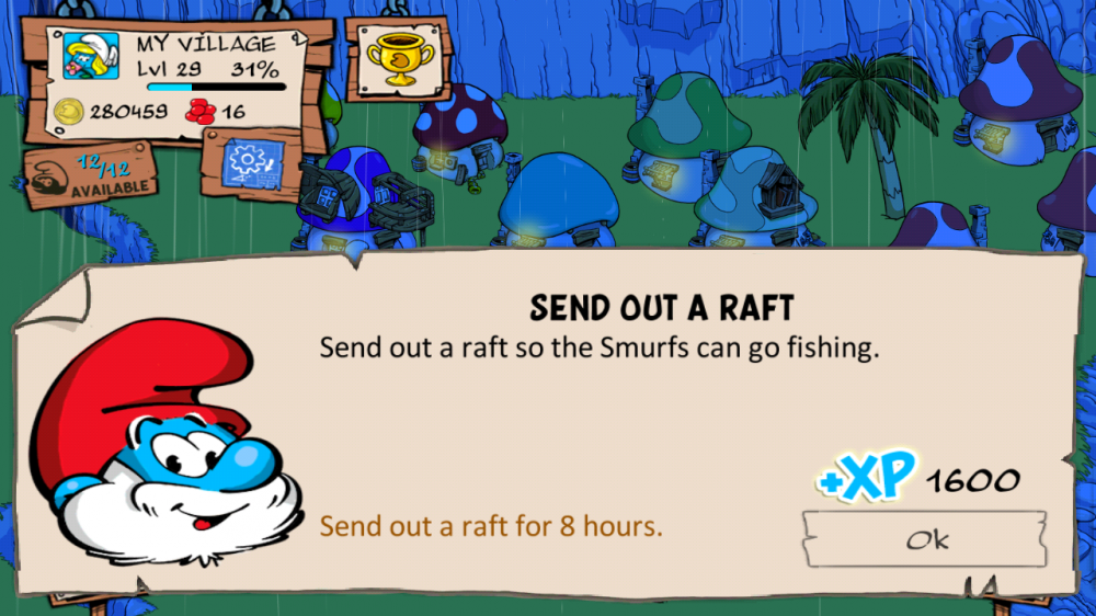 المطلوب انك ترسلين سنفور في الطوافه لمده 8 ساعات