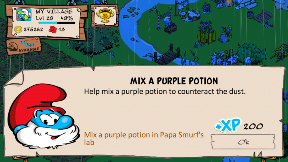 اخلطي المحلول البنفسجي في بيت بابا سنفور