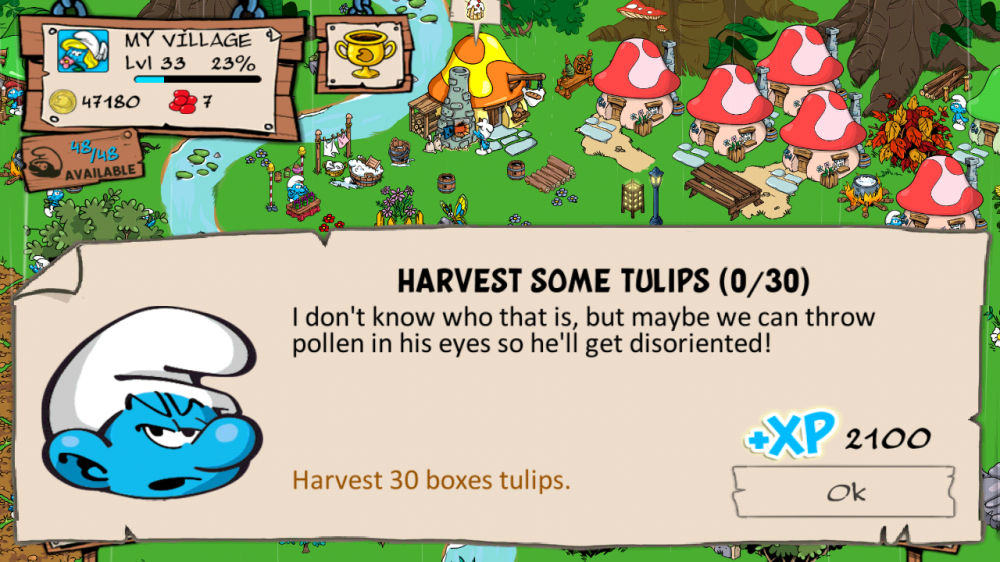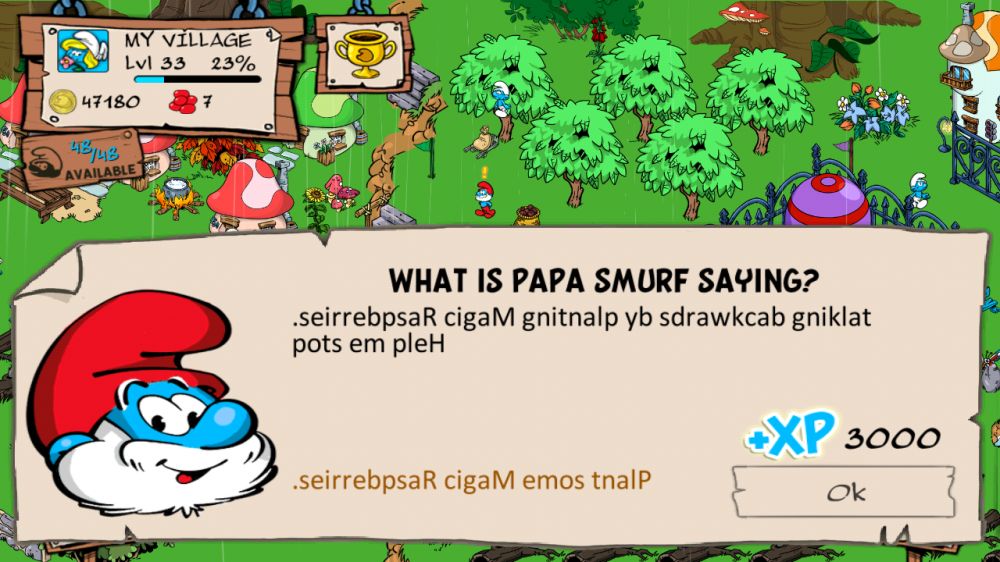 اضغطي على السنفور اللي عنده هديه لكا يكون فوقه تعجب
