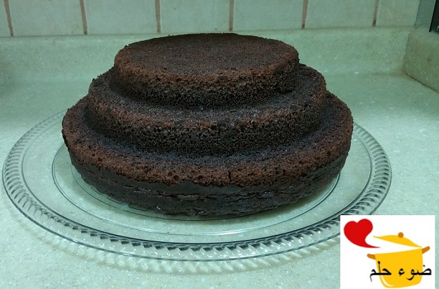 ونلفها بالسولوفان او كيس بلاستيك حتى ماتلوث الكيك نفسه ,, ونرجع نحطها بوسط الكيكه .