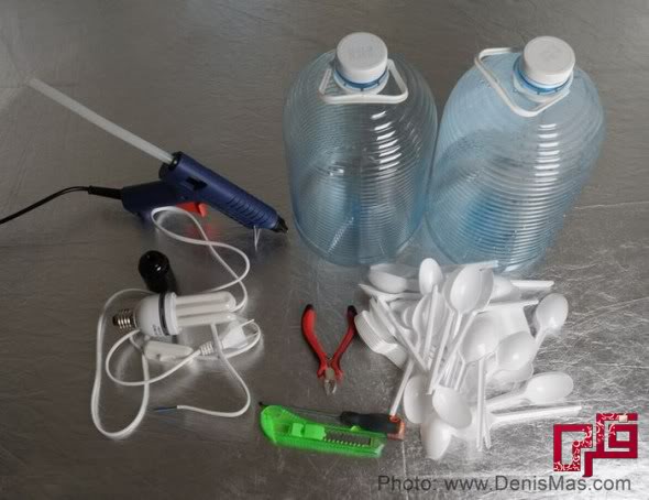 فكرة عمل لمبه بأستخدام الملاعق البلاستيكيه
