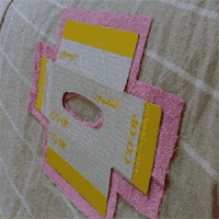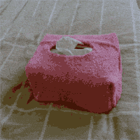 توضع العلبة المقصوصة على المنشفة وتقص وتترك زيادات على الاطراف حتى تخيطينها