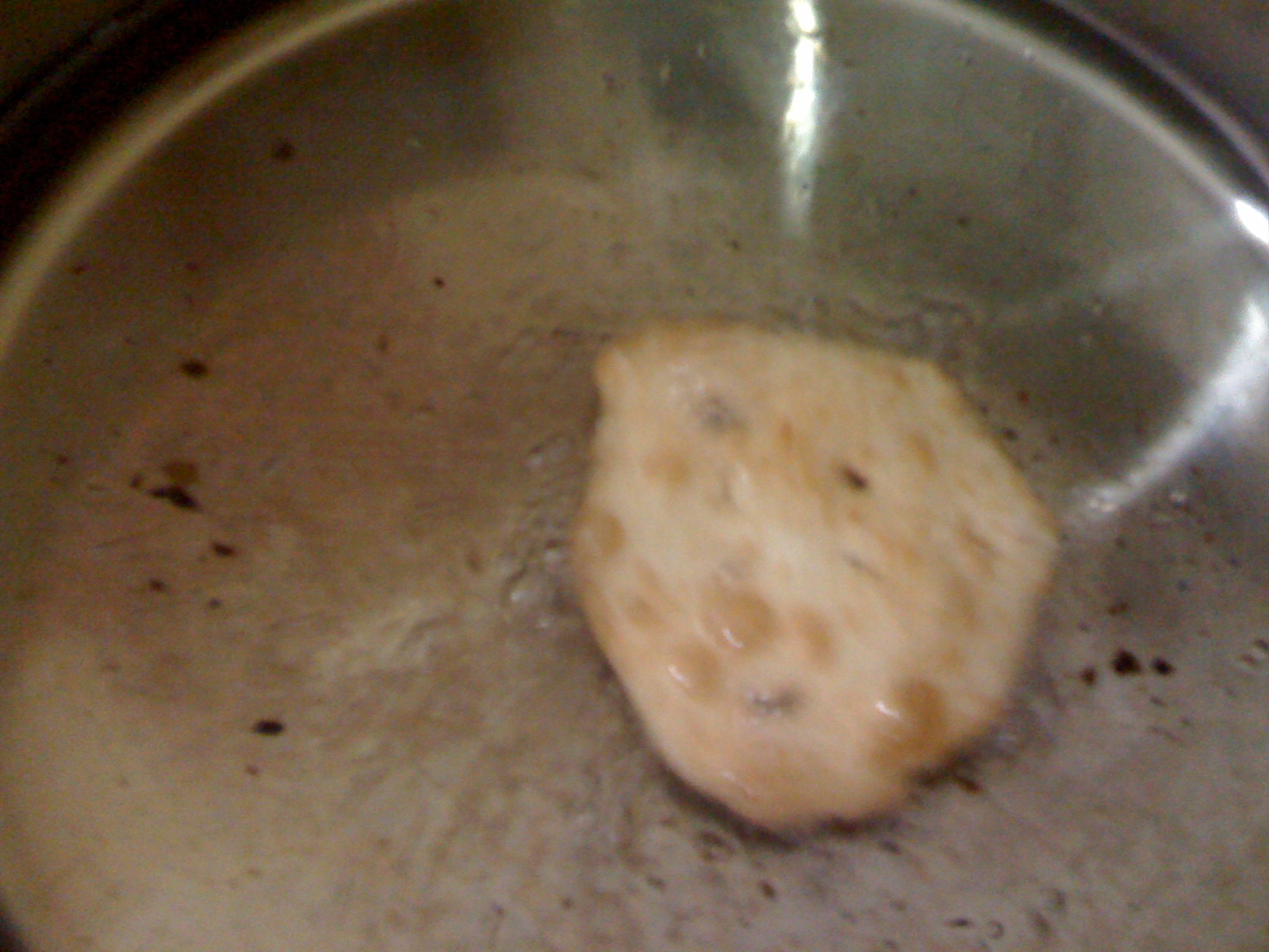 عملت عجينة واعطيتها شويه تلعب فيها حتى تغير لونها وتفردها وفي الأخير قالت اطبخوها ليه