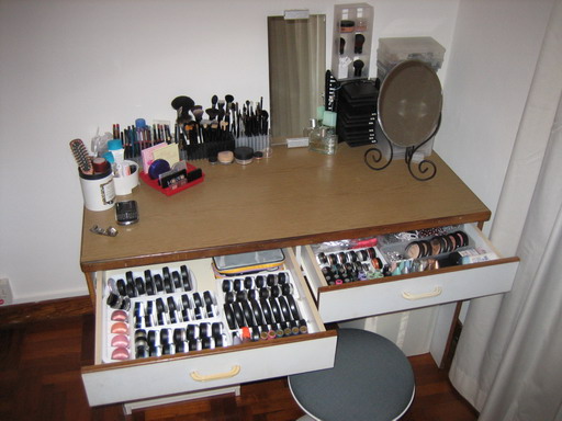 تكون من كريستال او خشب او خيزران حسب ستايل غرفتك وتكون الكاسه تغطيلك بس ربع القلم من تحت عشان يبانو وعلب البلاشر والبودره خليهم زي ماهما على التسريحه والمكياج الباقي حطيه في الدرج لانو راح يكون المكياج كثير وعلبه اكثر