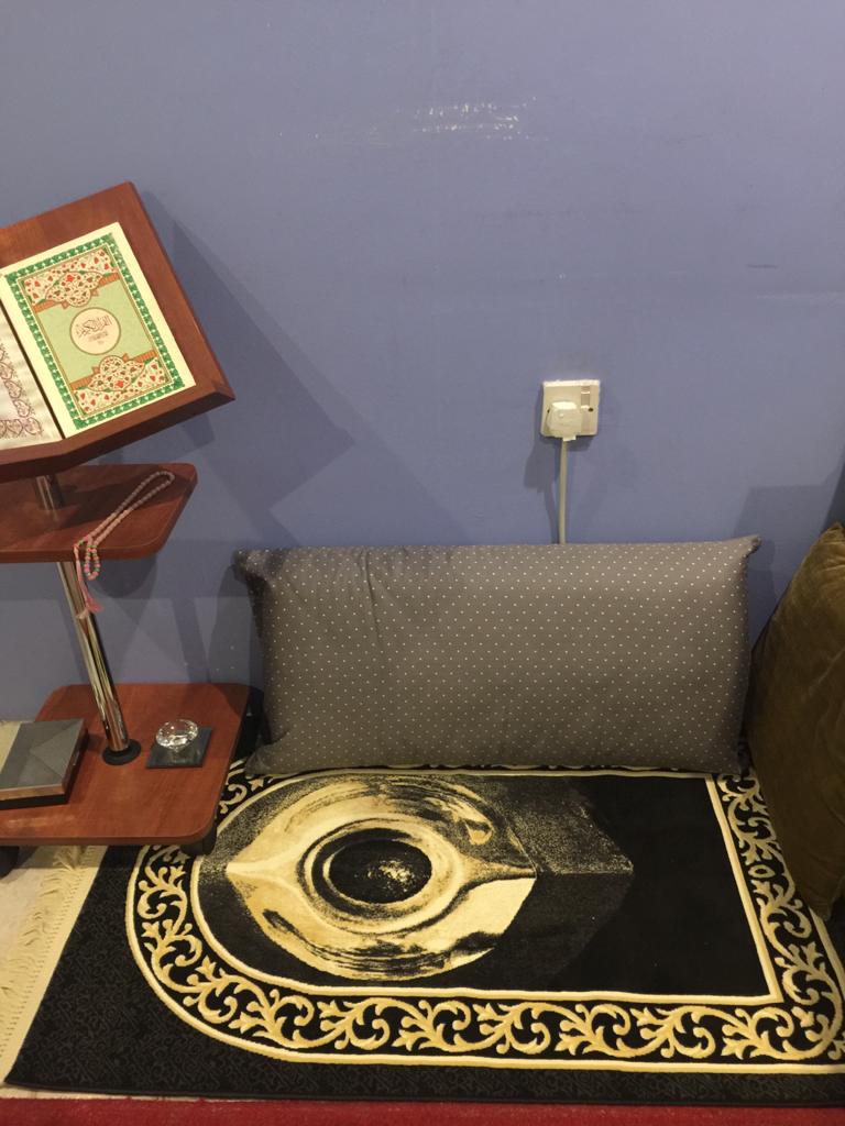 ركن بسيط على الأرض هيأته لرمضان لقراءة القرآنركن بسيط على الأرض هيأته لرمضان لقراءة القرآن