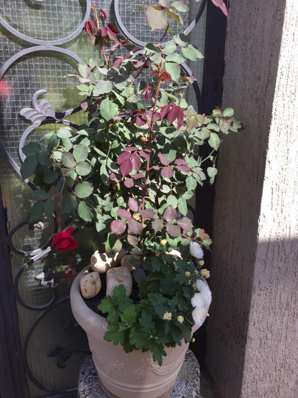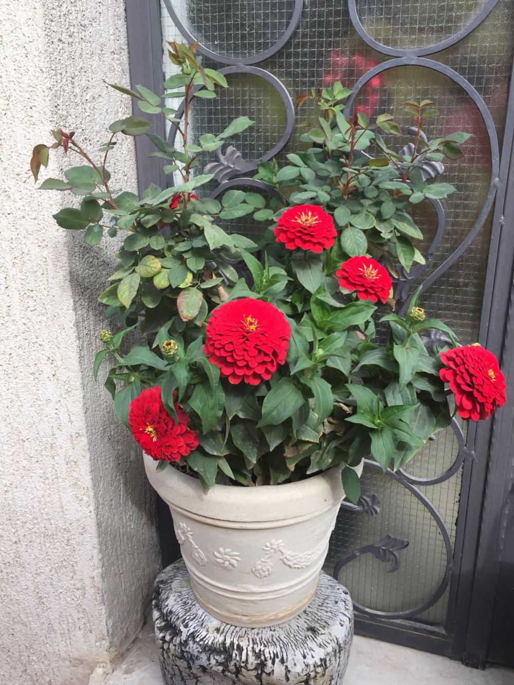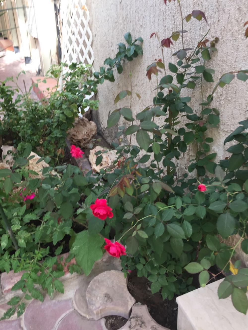 في ركن آخر زهور حمراء ( لست ملمًة بالأسماء) هذه الزهور ليس لها عطر