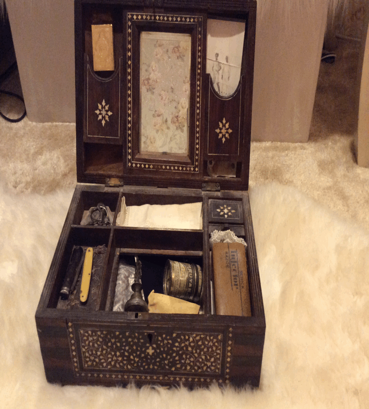صندوق من الخشب مطعم بالعاج سقط الكثير من عاجه