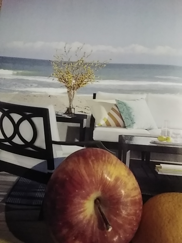 الصورة مركبة بين صورة مجلة وفواكه حقيقية