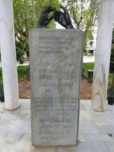 مكتوب على التمثال أبيات من الشعر لولادة ولابن زيدون .