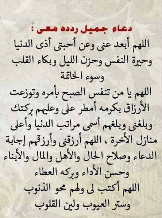 اللهم اجعل لي نصيب من كل شي أحببته اللهم اصرف عني ماتراه شرا لي واكتب لي الخير أينما كان يارب عوضني عن كل شيء أحببته وخسرته واكفني كل قهر يؤلمني وكل فكر يقلقني وكل هم يحزنني وجنبني اللهم شر ما يكون قبل أن يكون اللهم ياجبار أجبرني جبرا يتعجب منه أهل السموات والأرض. اللهم اميناللهم اجعل لي نصيب من كل شي أحببته اللهم اصرف عني ماتراه شرا لي واكتب لي الخير أينما كان يارب...