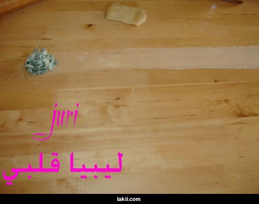 تاخذ قطعه من العجينه وتفرد ,حاولي ان تكونالعجينه رفيعه جدا عنده فردها شفافه يجب فرد العجينه عكس اللفه