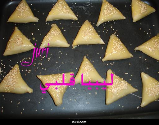 ويعد ذلك ترص في صواني الخبز وتدهن بي صفار البيض وترش بالسمسم