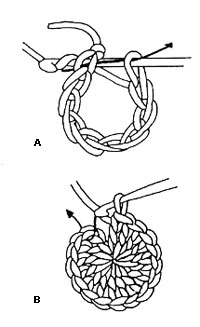 - Pass the hook through the previous stitch (remember to skip 2 sts.).