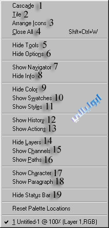 (10) إخفاء/إظهار نافذة لوحة الالوان .