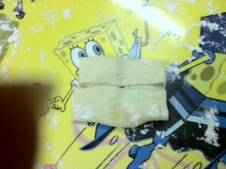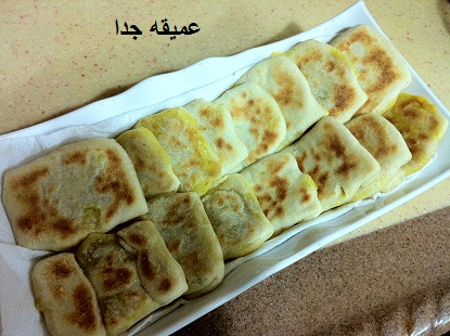نفرد العجينه جزء صغير ونحط ملعقه من الحشوة
