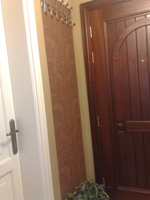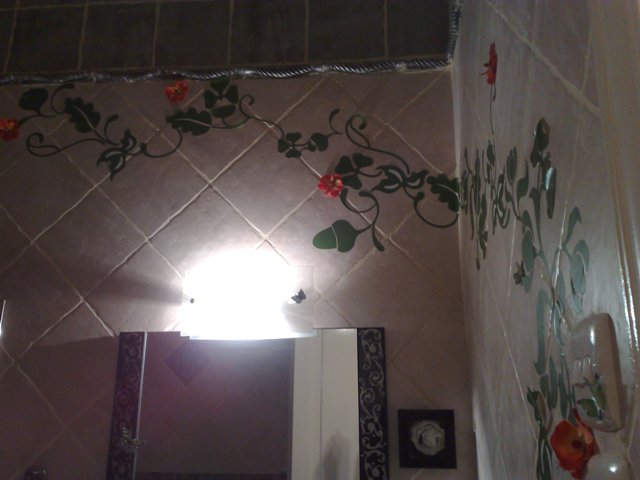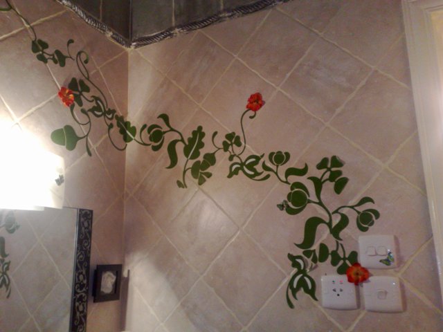 وكان عندي ورق جدران فيه ورود وعروق كرهتني ام جوري فيه ولقيناله حل اننا نقصه على