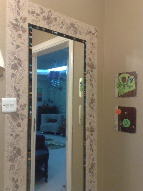 هذا الجدار الحجر سويت في الزاويه فكره ..كان عندي مرايات زايده وديتها عند حق الزجاج وقصها لي