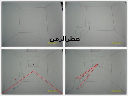 وبعد جوانب الغرفه صاير لها نقطة تلاشي ثانيه..