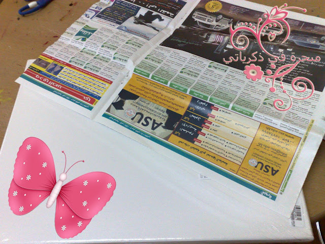 لوحة كانفس وصورة طبعتها من الكنبيوتر الصوره بعد ما طبعتها وتركتها تنشف حبرها المفروض فيه ماده اسمها قوما لاك(goma laca )