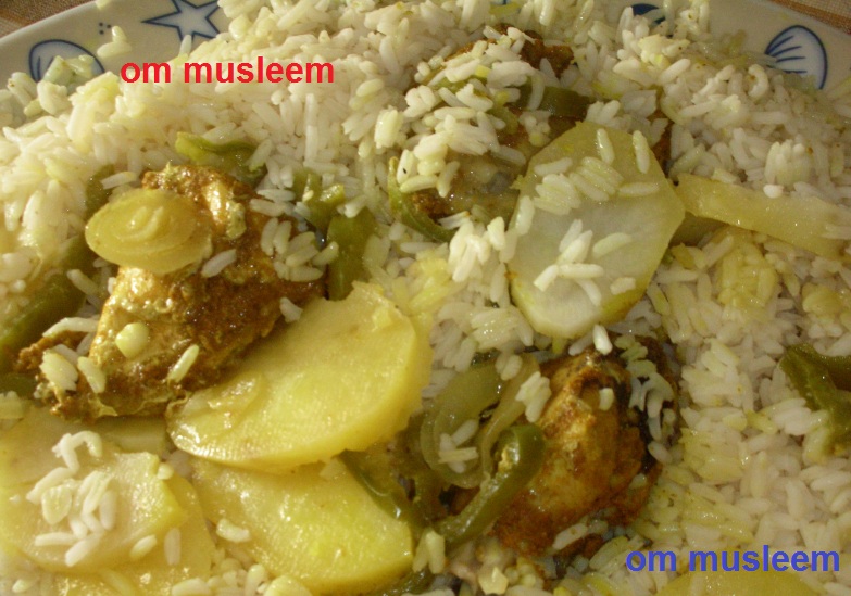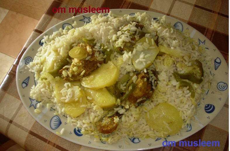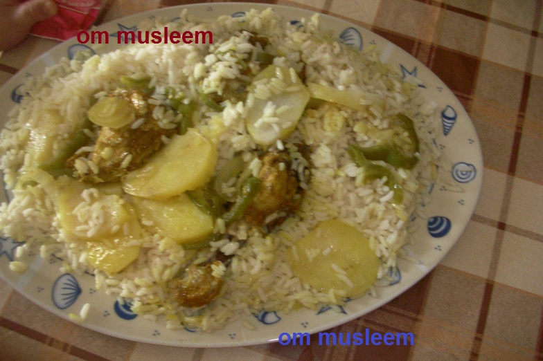 وطبعا سويت الرز لحاله وبعد ما استوى قدمته جنب الدجاج بنفس الصينيه