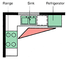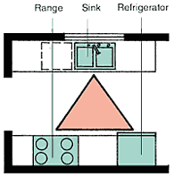 و هذا المثلث يسمح لشخصين على الأقل باستخدام المطبخ في نفس الوقت لغرضين مختلفين دون أن يضايق أحدهما الآخر أثناء حركته داخل المطبخ.