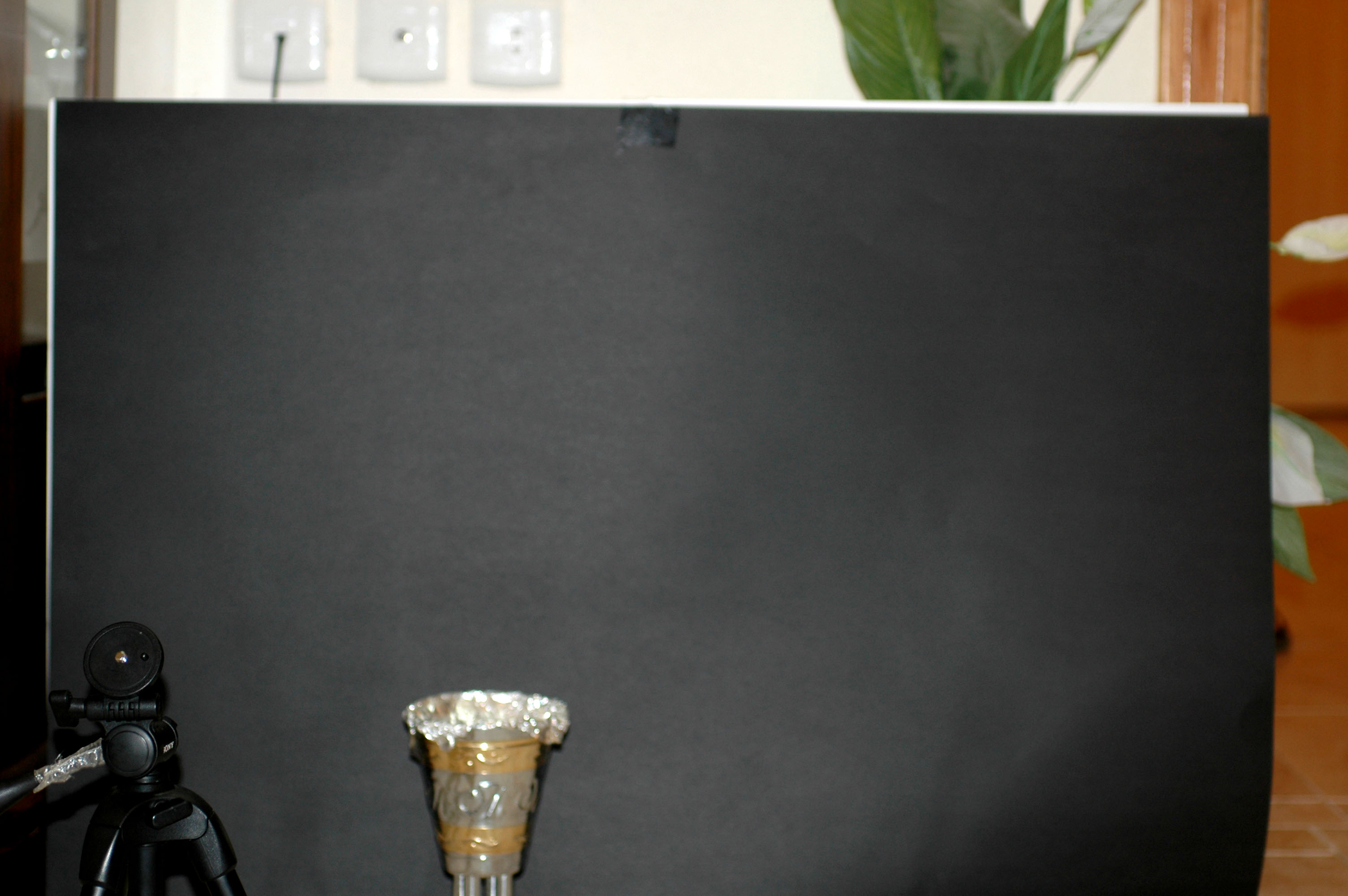 اول شئ احتجت خلفيه سوادء شريت فلينه وثبت عليها لوحه سوداء وجبت المبخره وحطيت فيها بخور