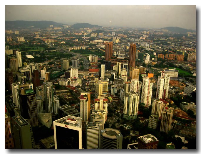 مدينة كوالالمبور نهارا كماتبدوا من المناره وفي الصوره فندق برجايا تايم سكوير