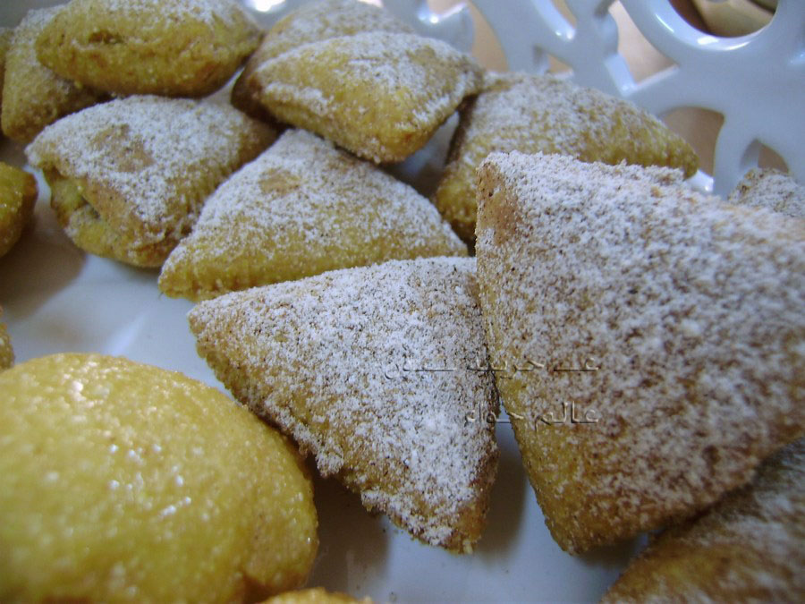 سويت مثلثات حشيتها تمر وبهار معمول ورشيتها سكر وقرفة طعمها رووووووووووووعة