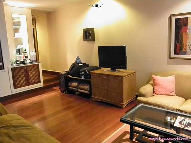 وبعدين دخلنا داخل الفندق وكان فيه غرفه بجنب الرسبشين فيها جلسات وكافي وتلفزيزن , ونت مجانا